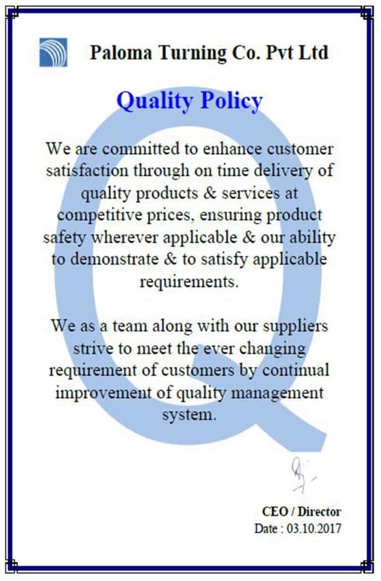 Paloma Quality Policy